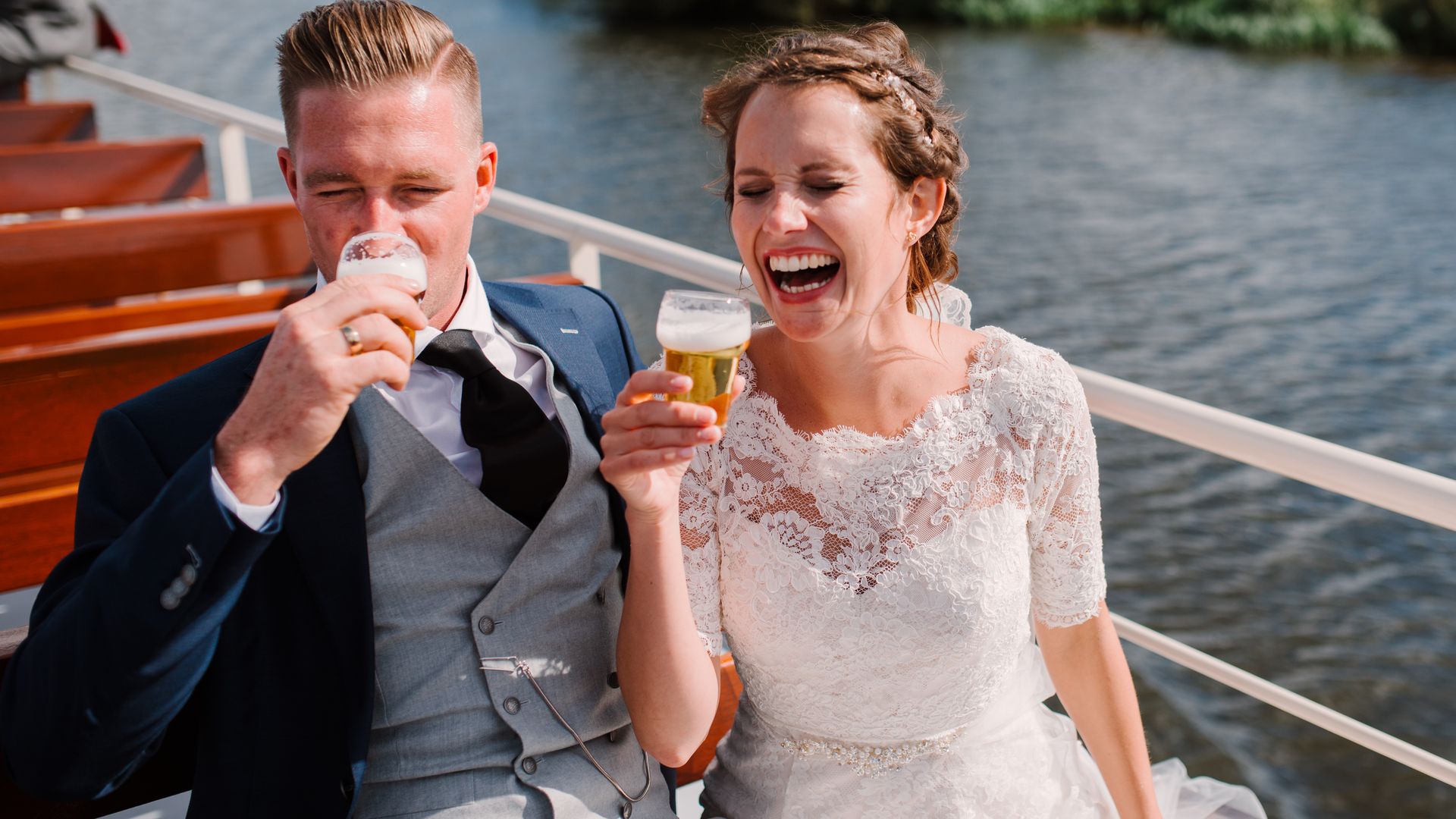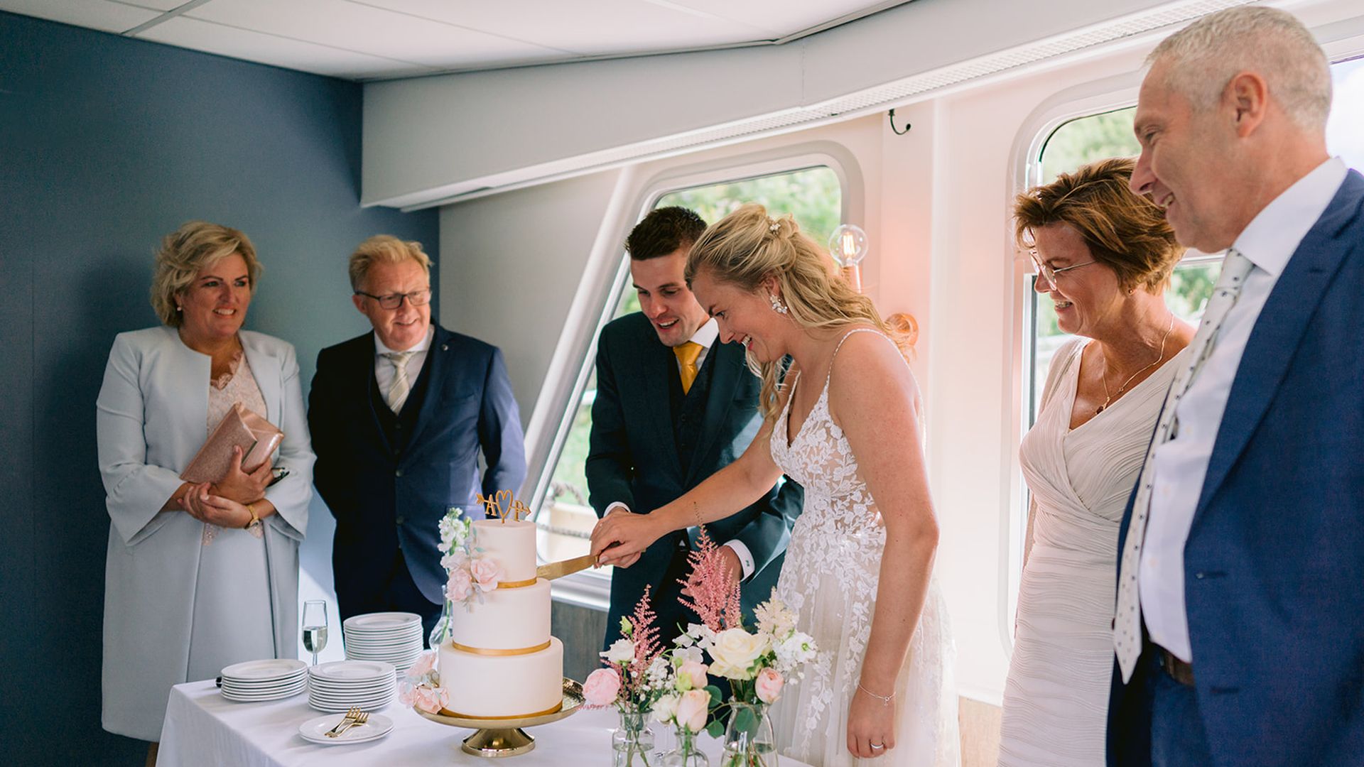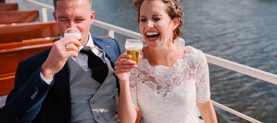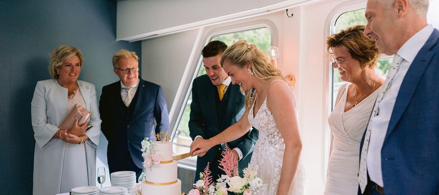 Wij hebben een bijzonder mooi plekje waar de huwelijksreceptie kan plaatsvinden. Namelijk op ons partyschip, waarbij jullie genieten van een prachtige tocht op de Overijsselse Vecht. Onder het genot van een heerlijk hapje en drankje, proosten jullie samen met jullie gasten op de liefde! Met mooi weer borrelen jullie samen op ons bovendek in het heerlijke zonnetje. Met minder mooi weer proosten jullie binnen in onze gezellige, moderne salon.